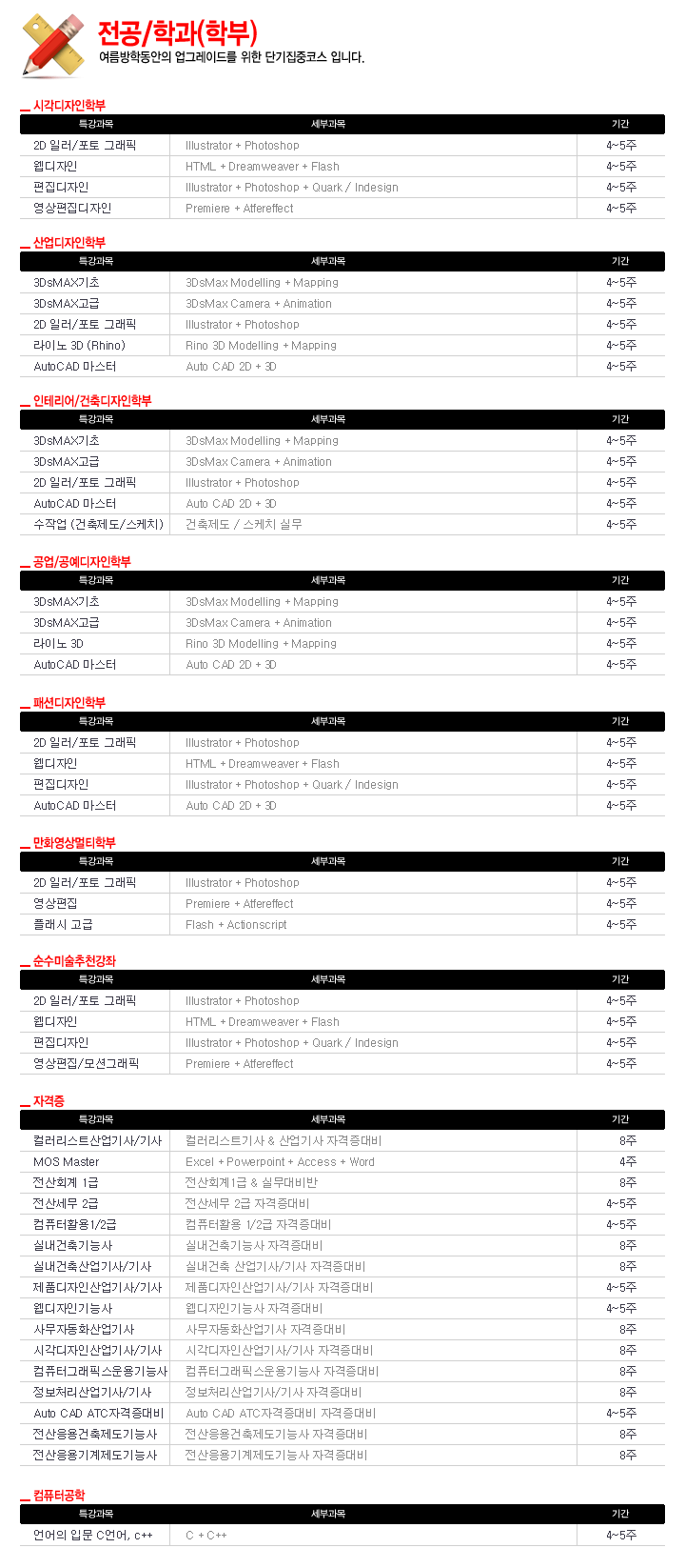 지점을 선택하세요 강남 강남AI 종로 신촌 구로 노원 안양 안산 성남 구리 일산 김포 동탄 남양주 강릉 교육과정을 선택하세요 웹디자인·웹퍼블리셔 편집디자인·영상편집 전산세무회계·ERP IT·프로그래밍 컴퓨터활용·OA 건축·기계설계 자격증과정 국가기간전략산업훈련 (디지털디자인)UI/UX 웹&앱AI디자인(피그마&ChatGPT&Midjourney) 영상(프리미어&애펙)을 활용한 웹&앱 UI/UX디자인 피그마(Figma)를 활용한 웹&앱 UI/UX디자인 실업자 쇼핑몰, 오픈마켓 상세페이지 제작+GTQ(일러스트,포토샵) 재직자 UI/UX디자인 피그마(Figma) 프로젝트 [학원자체시험]일러스트자격증(GTQi1급/2급) [학원자체시험]포토샵자격증(GTQ1급/2급) 반응형웹사이트제작(HTML5+CSS3) 웹디자인기능사(HTML5, CSS3, Javascript, jQuery) 실기 일러스트를 활용한 광고 콘텐츠 제작 자바스크립트(프런트엔드, 백엔드)웹프로그래밍 포토샵을 활용한 광고 콘텐츠 제작 교육과정선택(5개과정만 문의가능) 지점을 선택해주세요 내용을 작성해주세요 이 름 휴대폰 번호 이메일 주소 문의하실 내용 개인정보 수집동의 [개인정보수집및 이용동의 안내]
