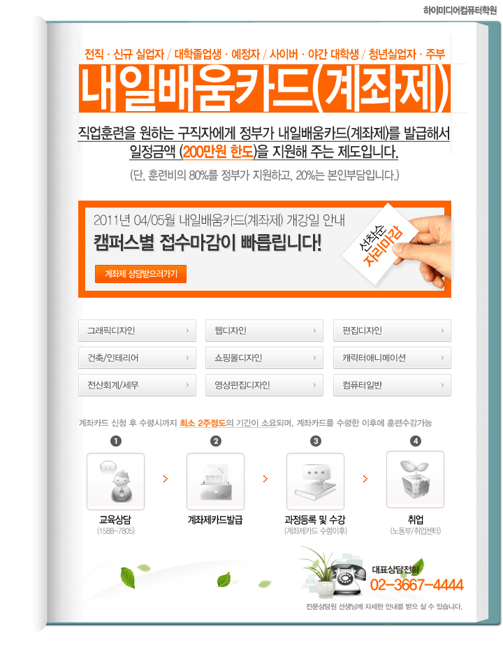[실업자국비지원] 04/05월 내일배움카드 개강안내